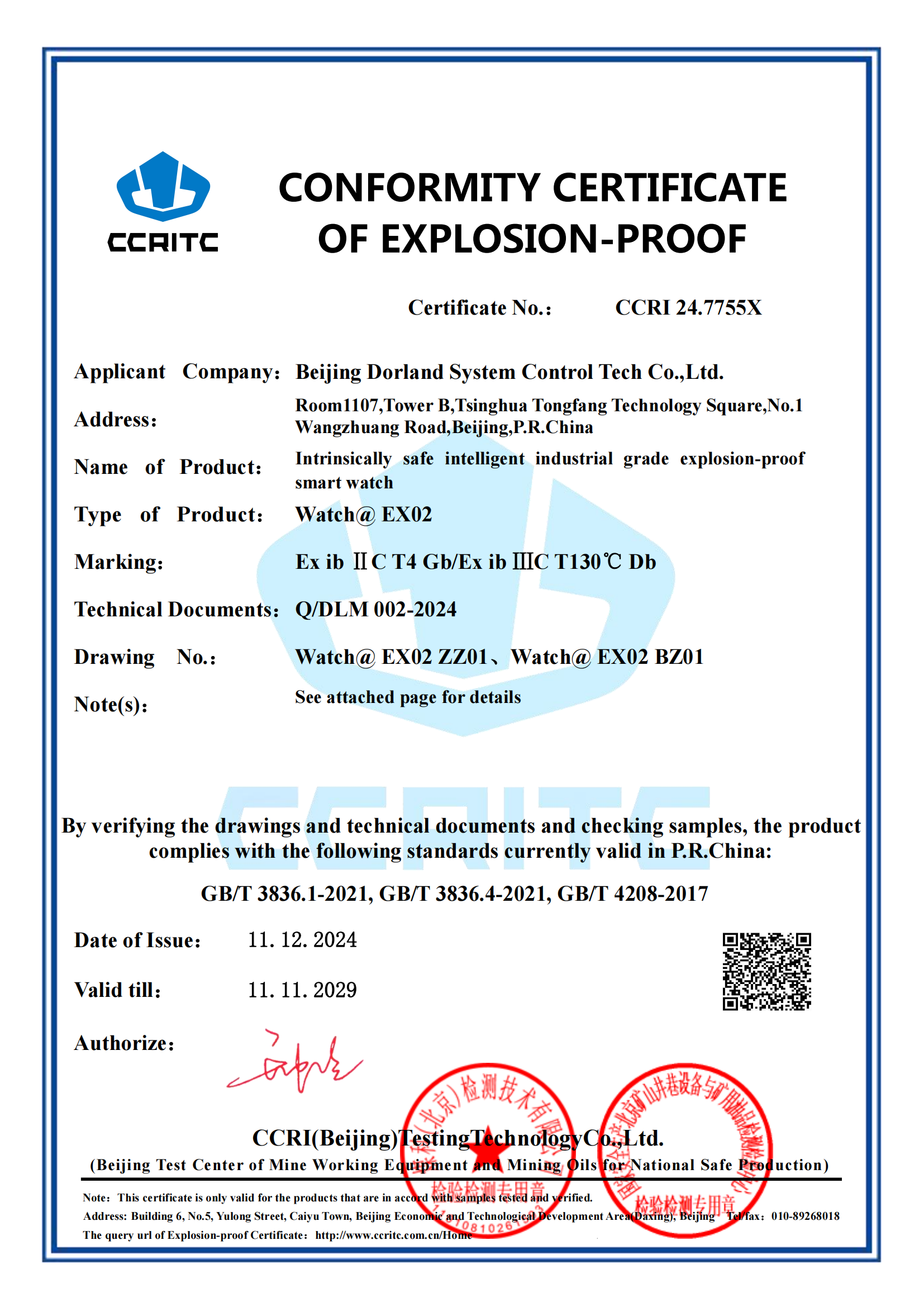 Dorland System Control Tech Co., Ltd. has recently launched the intrinsically safe intelligent industrial grade explosion-proof smart watch - Watch@ EX02, which features an intrinsically safe circuit design, a powerful appearance, and a sturdy body. This watch is a dual camera watch with a 1.6-inch touch screen display. It comes with a dual camera front 0.3MP and side 2MP, magnetic charging, and a 1260mAh battery for Android 9.0. The waterproof and dustproof performance of this watch meets the international IP67 standard, and the explosion-proof certificate is Ex ib IIC T4 Gb / Ex ib IIIC T130 ℃ Db dual explosion-proof certification for dust and gas.