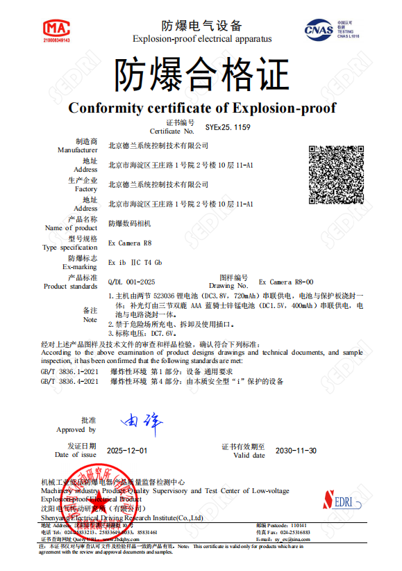 北京德兰系统控制技术有限公司最新推出防爆数码相机 Ex Camera R8,采用24-105mm镜头,采用佳能自主研发的新RF卡口,光学设计灵活性更高,更易实现高画质。约4.4倍变焦,覆盖日常拍摄的常用焦段,可轻松进行特写拍摄等,获得富有个性的照片效果。配备最大相当于约5级快门速度的IS影像稳定器为拍摄提供了有力的支持。