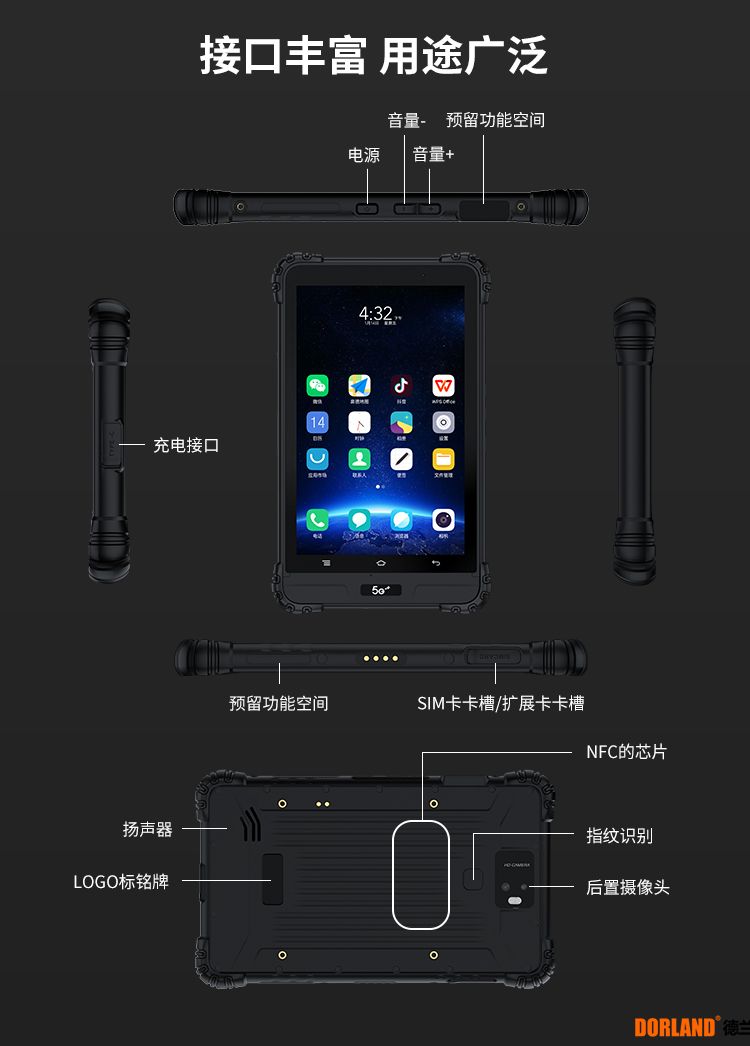 In addition, Intri_Tablet5G is built with NFC, Bluetooth and other functions to meet the reading and writing needs of various scenarios. We also configure GPS+GLONASS+Beidou+Galileo positioning and other functions inside the tablet that are suitable for outdoor construction, pipeline inspection and other functions. It can cooperate with OA office system, inspection and positioning system, data acquisition system and other applications.