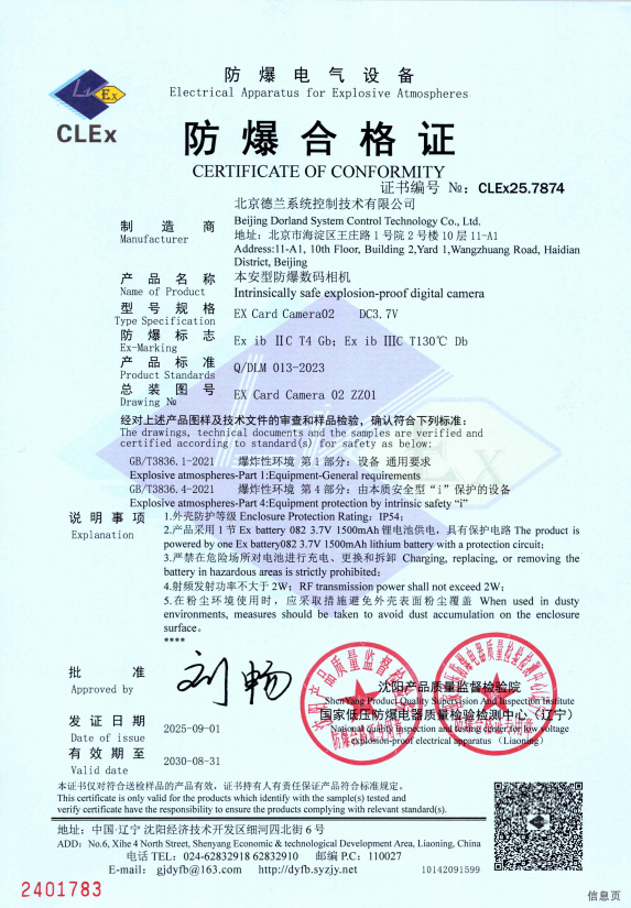 DORLAND System Control Technology Co., Ltd. recently launched Intrinsically Safe Explosion-proof Digital Card Camera EX Card Camera 02 Max, which uses front and rear dual camera lenses (64 million pixels) for easy selfies, supports EIS electronic image stabilization, supports autofocus, and presents clear near and far scenes.